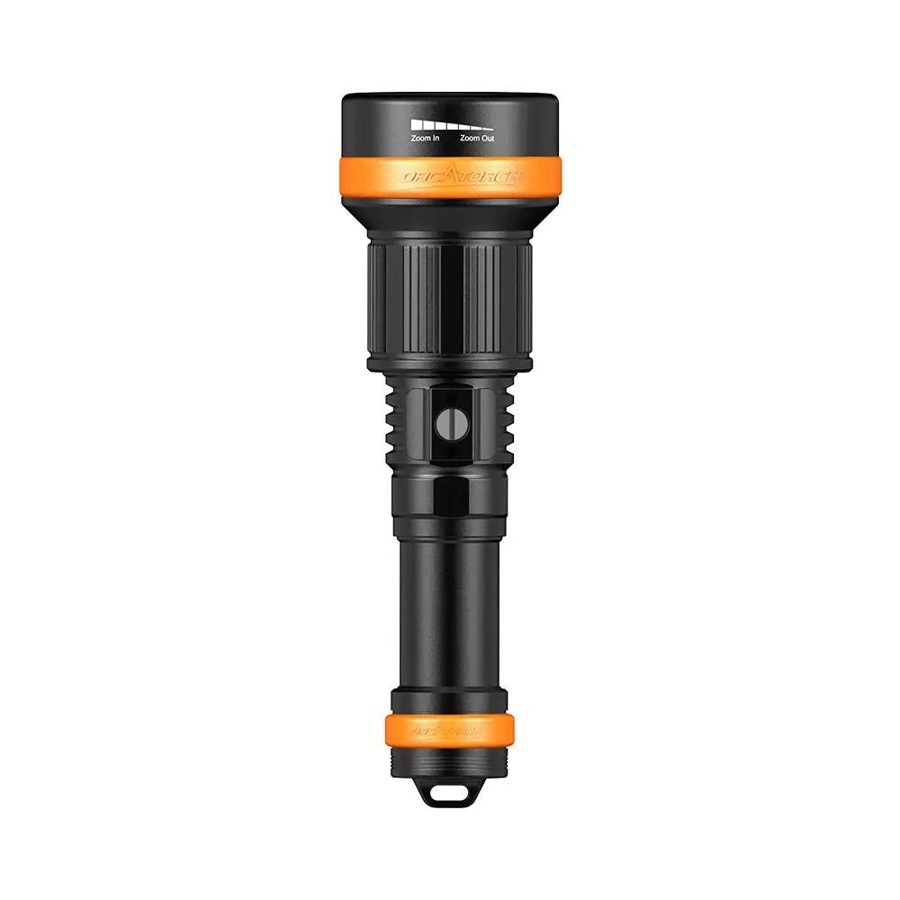 The all-new OrcaTorch ZD710 MK2 is a powerful, zoomable dive flashlight designed to meet the needs of serious divers. It offers a super bright beam with a peak intensity of 212,500 candela and a wide adjustable beam angle from 4° to 72°.